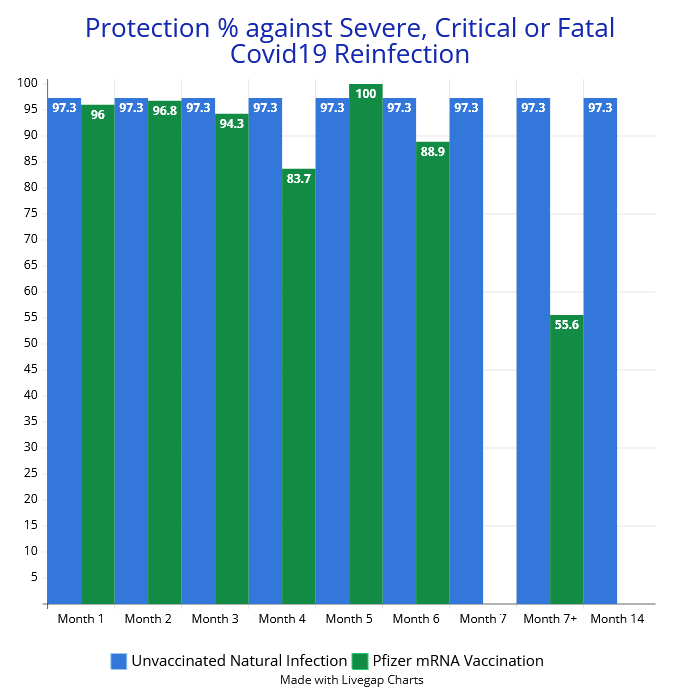 The question is why? Why does Pfizer vaccine protection against severe to fatal infection diminish after 6 months in circumstances where natural protection does not diminish at all in 14 months?